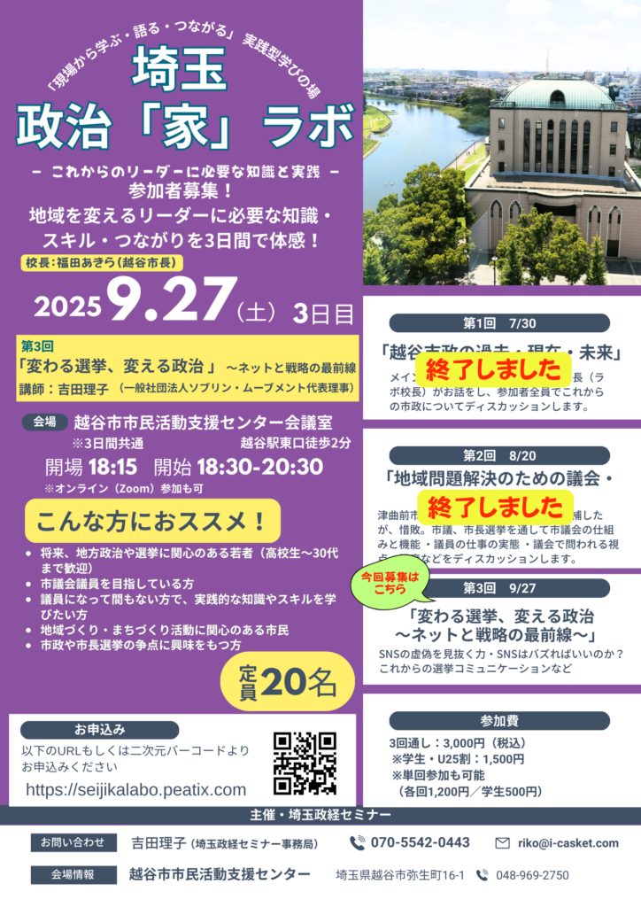HOME 2023.02.032025.09.20 NEW! 埼玉政治「家」ラボ 第2回 8/20 2025.08.08 さいたま政経セミナー R5年度連続講座「あなたの隣の社会課題」 2023.11.28 さいたま政経セミナー R5年度連続講座「あなたの隣の社会課題」 2023.11.28