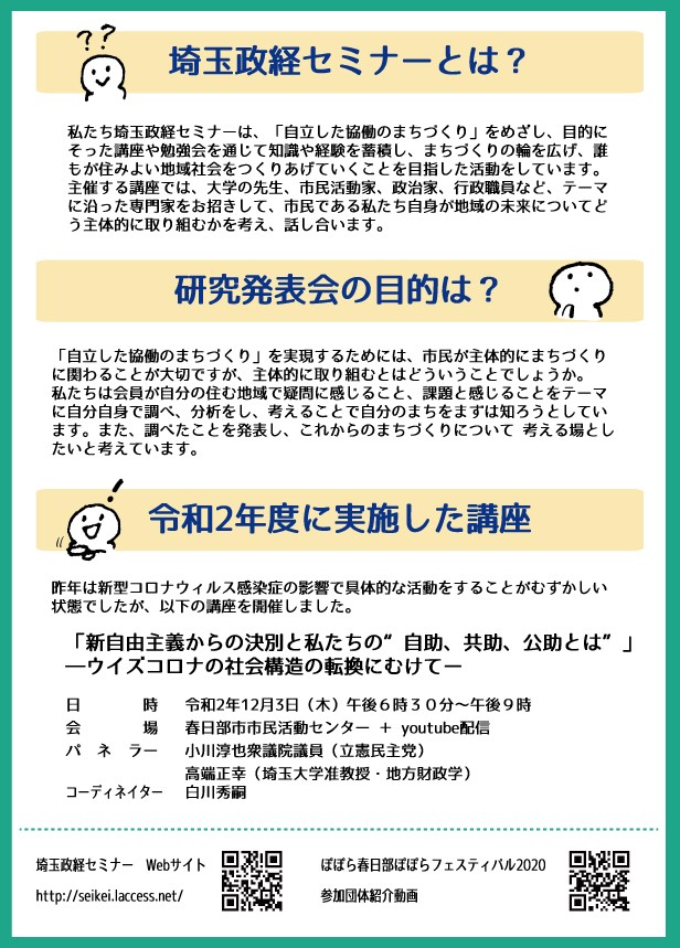 主催:埼玉政経セミナー(代表 白川秀嗣 越谷市議会議員)