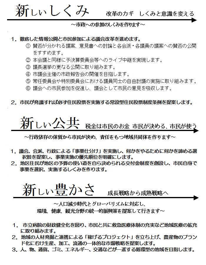 ※このマニフェストは市民と議員による20回を超える作成会議と新聞折込・